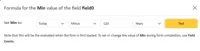 When editing the field settings of a date, date-time or time field you will notice a formula icon in the label of the default value and min / max fields: